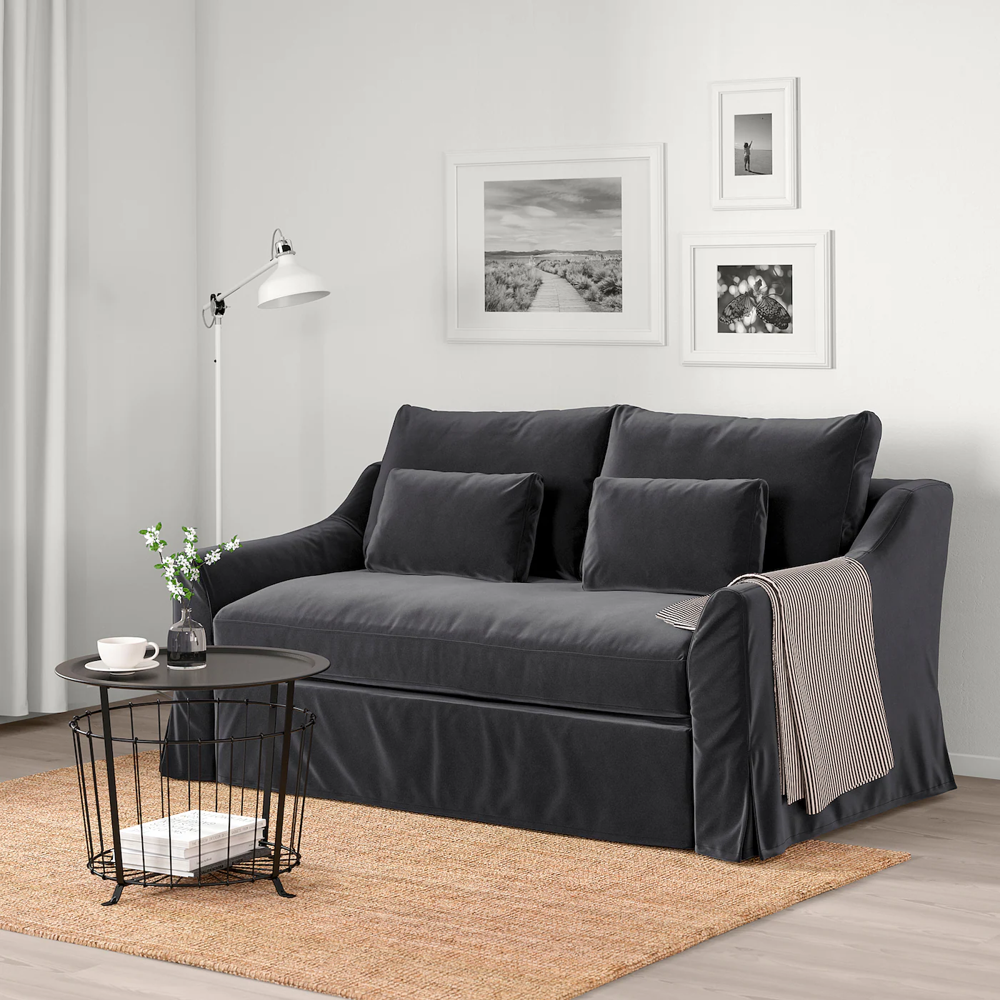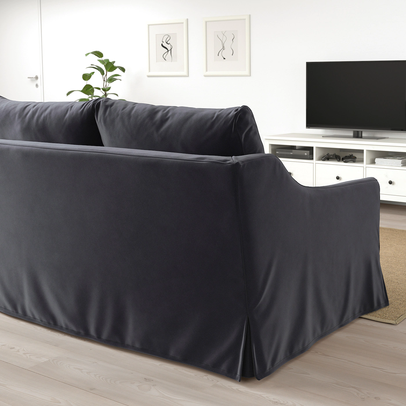 DJUPARP cover is made of velvet which, through a traditional weaving technique gives the fabric a warm, deep color and a soft surface with a dense pile and light, reflective shine. The velvet is woven from viscose and polyester, which makes it durable. The cover is easy to keep clean since it can be machine washed and is easy to take off and put on again. The sofa quickly and easily transforms into a bed for two. All you need to do is remove the back cushions and seat pad and pull the handle underneath ‒ the bed and mattress then fold out. You sleep well on the 4¾” thick and comfortable foam mattress that has the same resilient qualities as a bed mattress and has a smooth sleeping surface without disturbing joints. The mattress is easy to keep clean since you can remove the mattress cover and machine wash it. 10-year limited warranty. Read about the terms in the limited warranty brochure.Material