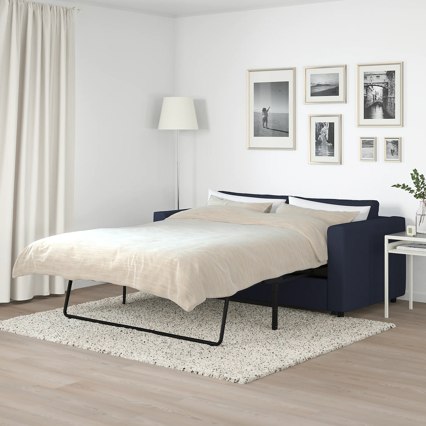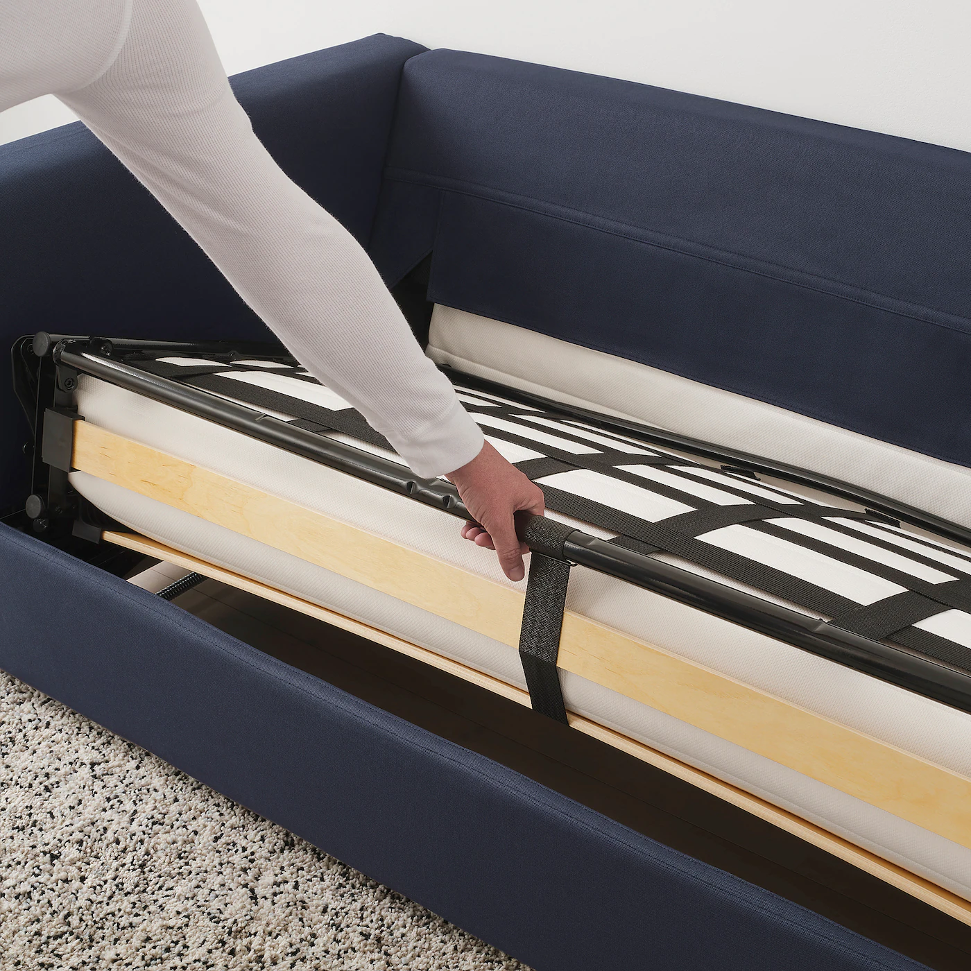 The sofa’s sections can be combined in different ways to get a size and shape that suits you. If you ever need a larger sofa, you can always add a section or two. The sleeper sofa has a 4¾” thick bed mattress in high resilience foam that provides comfortable support to your body and a smooth sleeping surface without disturbing joints. The bed slats work together with the mattress to give a more flexible comfort and nice sleep support. The sofa quickly and easily converts into a spacious bed. Orrsta cover is woven from cotton and polyester with a light structure that makes it soft and comfortable. The yarn-dyed fabric has a tone-on-tone effect and a clean and calm look. The cover is easy to keep clean since it is removable and machine washable. The mattress is easy to keep clean since you can remove the mattress cover and machine wash it. 10-year limited warranty. Read about the terms in the limited warranty brochure.Material