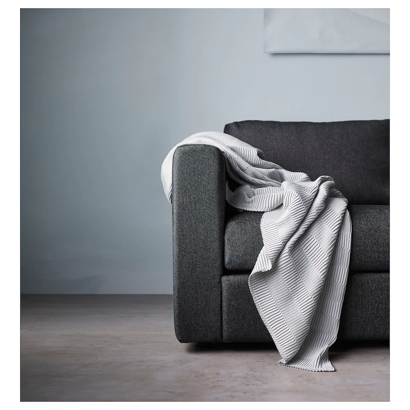 The bed slats work together with the mattress to give a more flexible comfort and nice sleep support. The sofa quickly and easily converts into a spacious bed. The mattress is easy to keep clean since you can remove the mattress cover and machine wash it. Tallmyra is a hardwearing chenille cover made of cotton and polyester and has a soft surface and a slightly reflective luster. The cover is easy to keep clean since it is removable and machine washable. 10-year limited warranty. Read about the terms in the limited warranty brochure.Material
