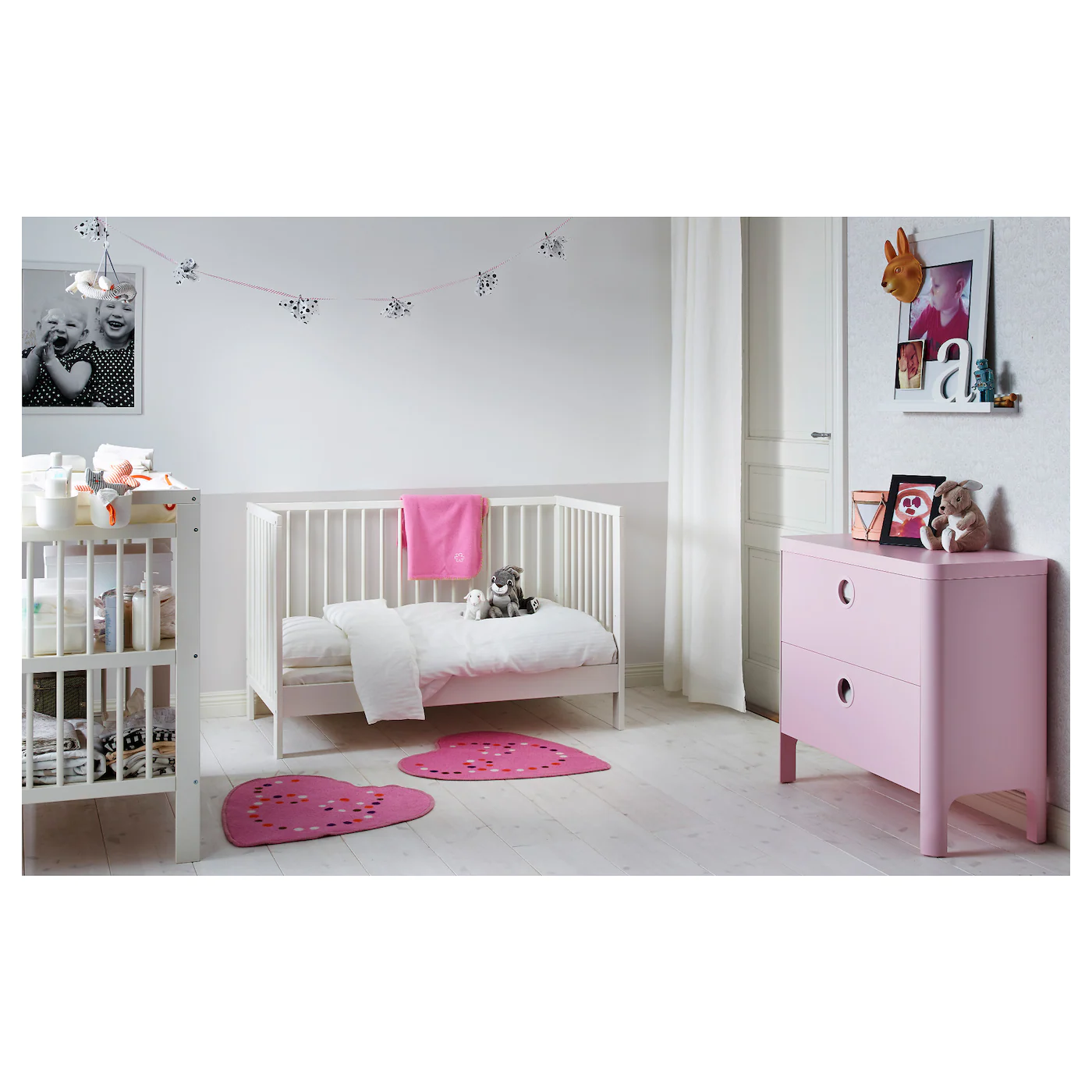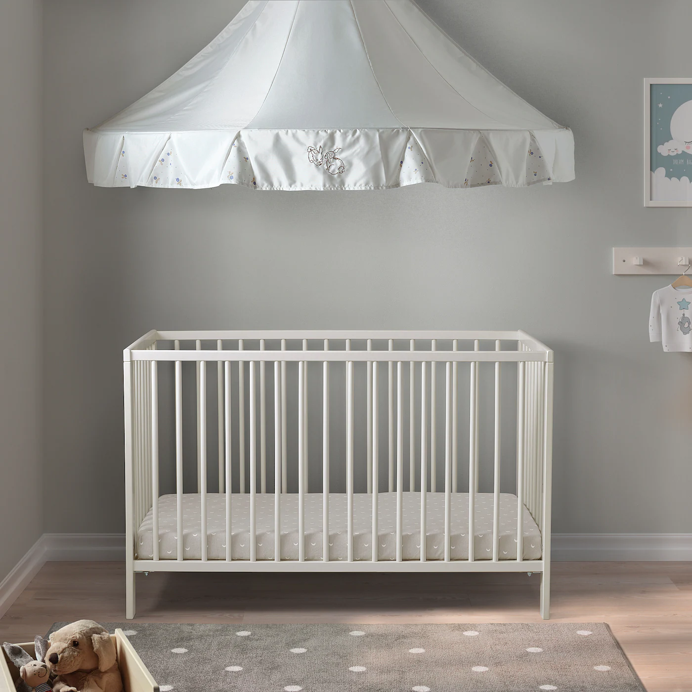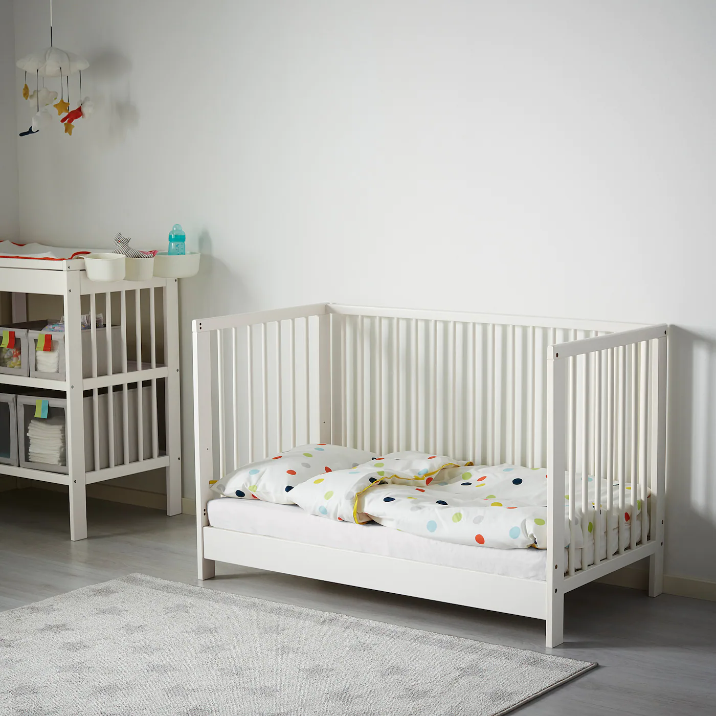 One crib side can be removed when the child is big enough to climb into/out of the crib. Your baby will sleep both safely and comfortably as the durable materials in the crib base have been tested to ensure they give their body the support it needs. The crib base is well ventilated for good air circulation which gives your child a pleasant sleeping climate.Material