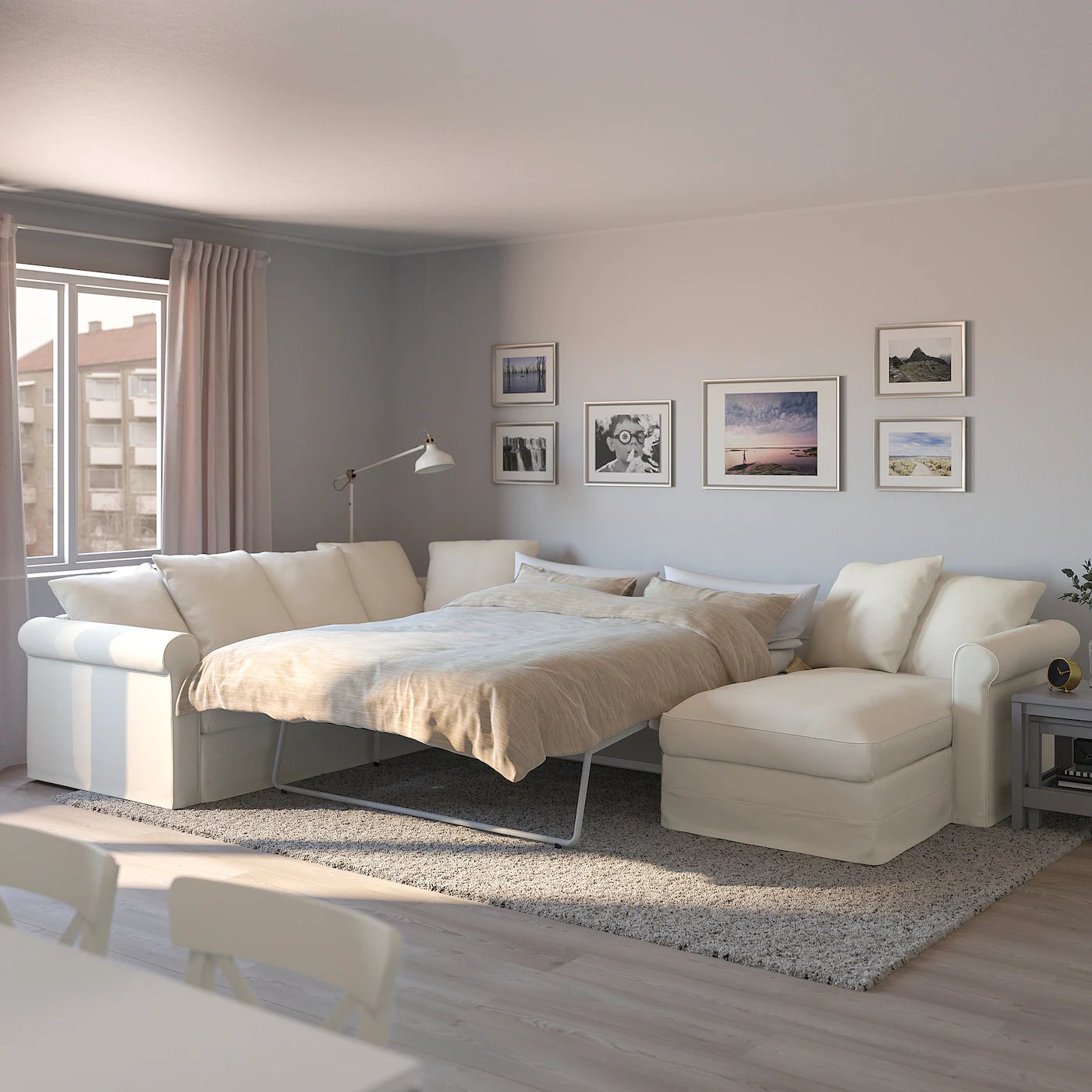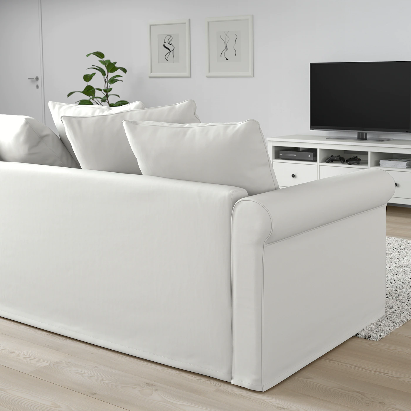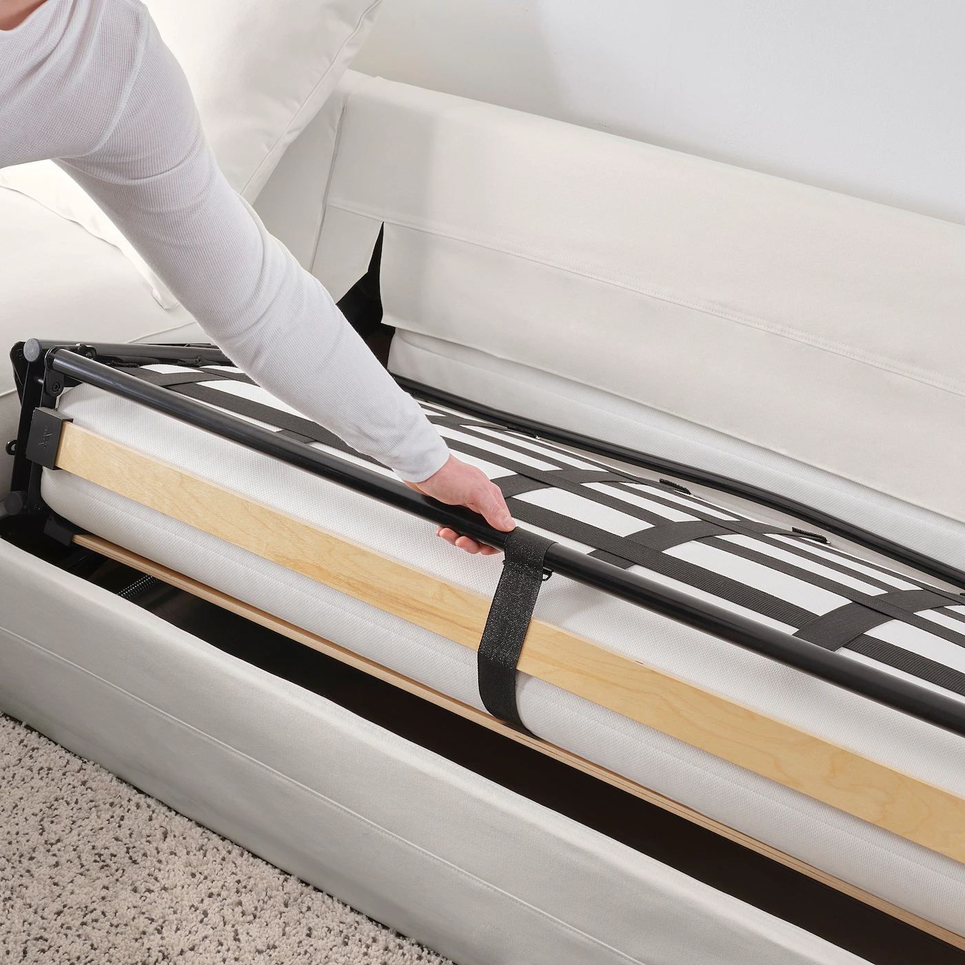 The bed slats work together with the mattress to give a more flexible comfort and nice sleep support. This sofa converts quickly and easily into a spacious bed when you remove the back cushions and pull out the underframe. You can use the sofa’s back cushions to get a comfortable back support to lean against in the bed. The mattress cover is easy to keep clean as it is removable and can be machine washed.Material