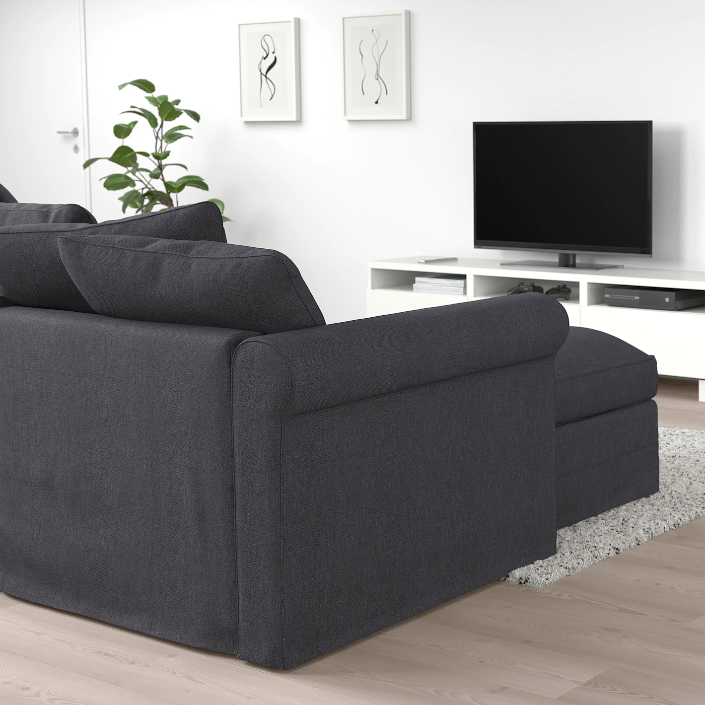 The bed slats work together with the mattress to give a more flexible comfort and nice sleep support. This sofa converts quickly and easily into a spacious bed when you remove the back cushions and pull out the underframe. You can use the sofa’s back cushions to get a comfortable back support to lean against in the bed. The mattress is easy to keep clean since you can remove the mattress cover and machine wash it. Storage space under the chaise. The lid stays open so you can safely and easily take things in and out.Material
