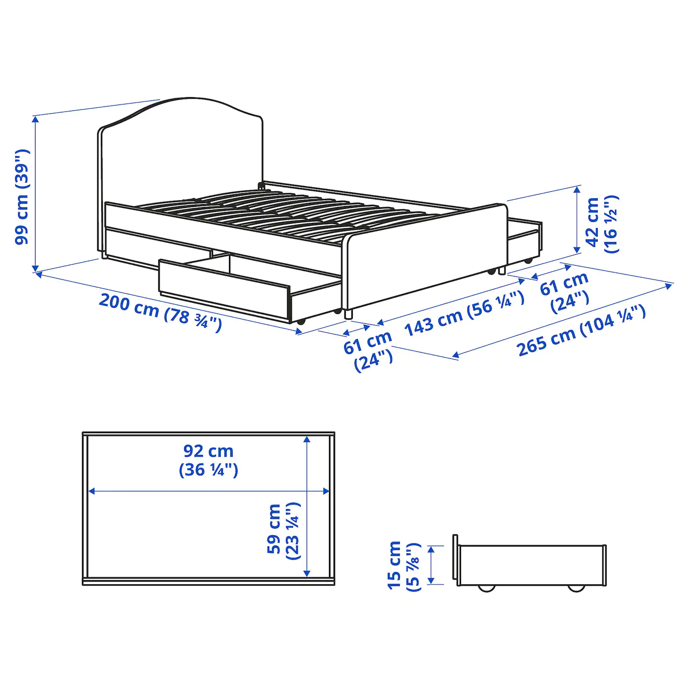 Designed to coordinate perfectly with the rest of the HAUGA series, the upholstered bed frame adds a touch of softness to your bedroom, bringing comfort during the night, and adding style around the clock. Casters make the boxes easy to roll out and in. The soft, padded headboard is comfortable to lean against while reading or watching TV in bed. A timeless look with soft upholstery, gentle curves and piping on the headboard and footboard. This cover is made from LOFALLET fabric in polyester. It´s a durable material with a soft-to-touch surface in a natural beige color.Material