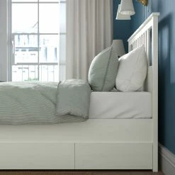 Made of solid wood, which is a durable and warm natural material. Adjustable bed sides allow you to use mattresses of different thicknesses. The 4 large drawers give you an extra storage space under the bed.Material