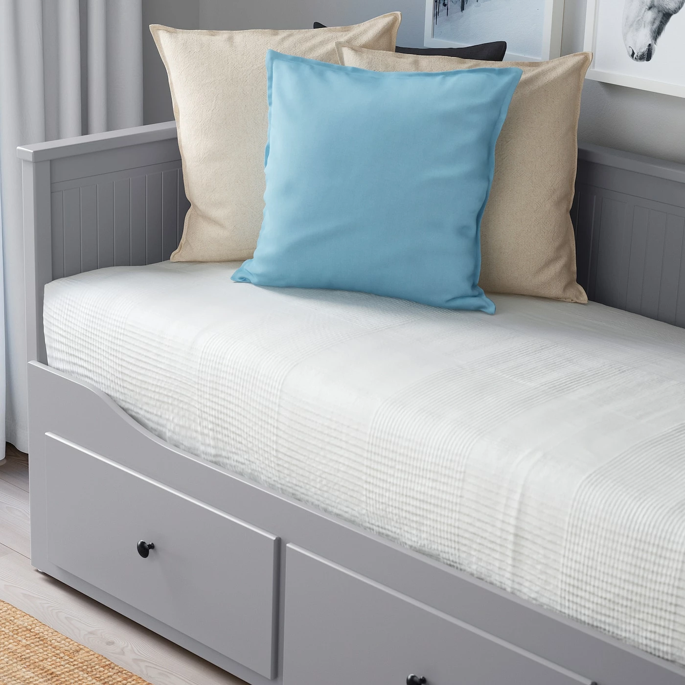 The high frame creates a cozy cocoon feeling, and is lacquered so that it’s easy to maintain. With some soft, fluffy pillows as back support, you easily transform this day bed into a comfortable sofa. The pocket springs move independently and provide support exactly where you need it.Material