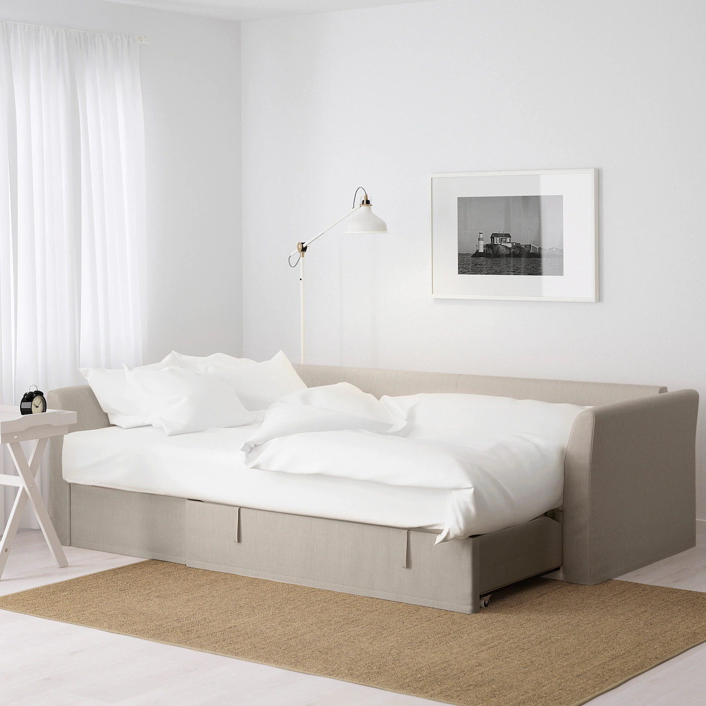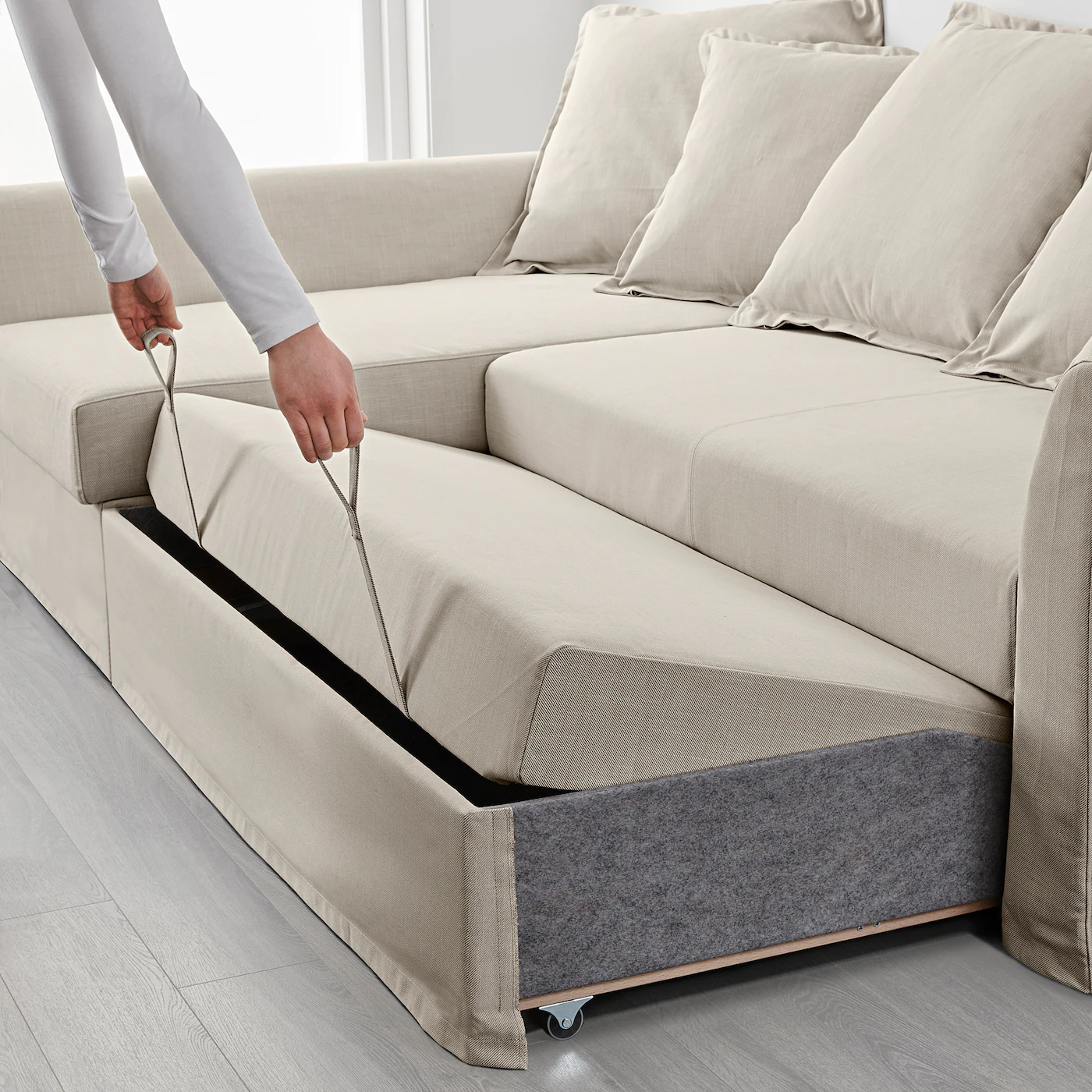 Storage space under the chaise. The lid stays open so you can safely and easily take things in and out. You can angle the loose back cushions any way you like, and adapt the seat depth and back support to suit your needs. You can place the chaise section to the left or right of the sofa, and switch whenever you like. The cover is easy to keep clean as it is removable and can be washed. This sofa converts quickly and easily into a spacious bed when you remove the back cushions and pull out the underframe. 10 year Limited warranty. Read about the terms in the warranty brochure.Material