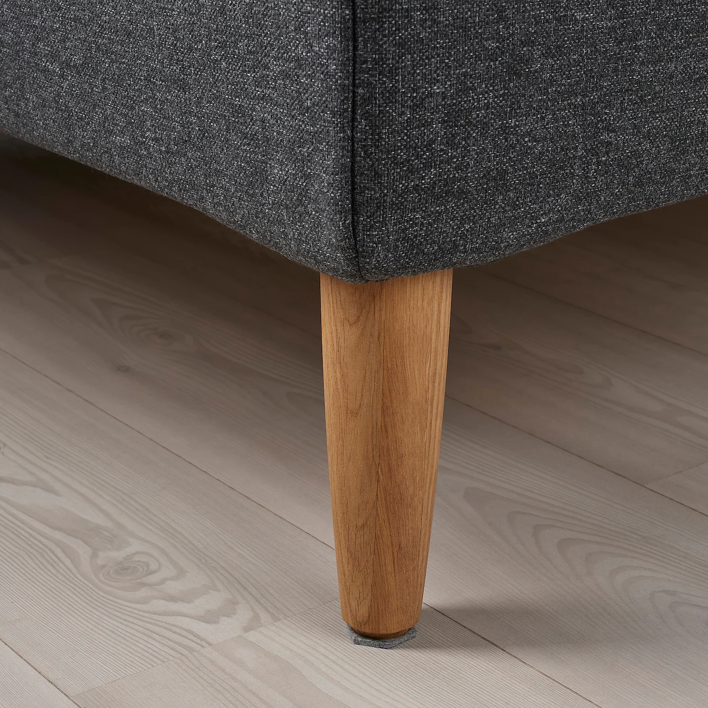 Classic button detailing makes the headboard eye-catching in any bedroom. The upholstery is soft to the touch and makes bedtime even cozier. The solid wooden legs are strong and sturdy – and complement the classic design. Create a coordinated bedroom by combining this bed frame with other furniture from the IDANÄS series. Easy to put together thanks to a simplified assembly process with fewer steps and hardware. GUNNARED dark gray fabric is durable and gives the bedroom a timeless style. There’s plenty of space under the bed for storage boxes – perfect for storing extra quilts and pillows. You can easily vacuum under the bed frame to keep the space clean and dust-free. Adjustable bed sides allow you to use mattresses of different thicknesses.Material