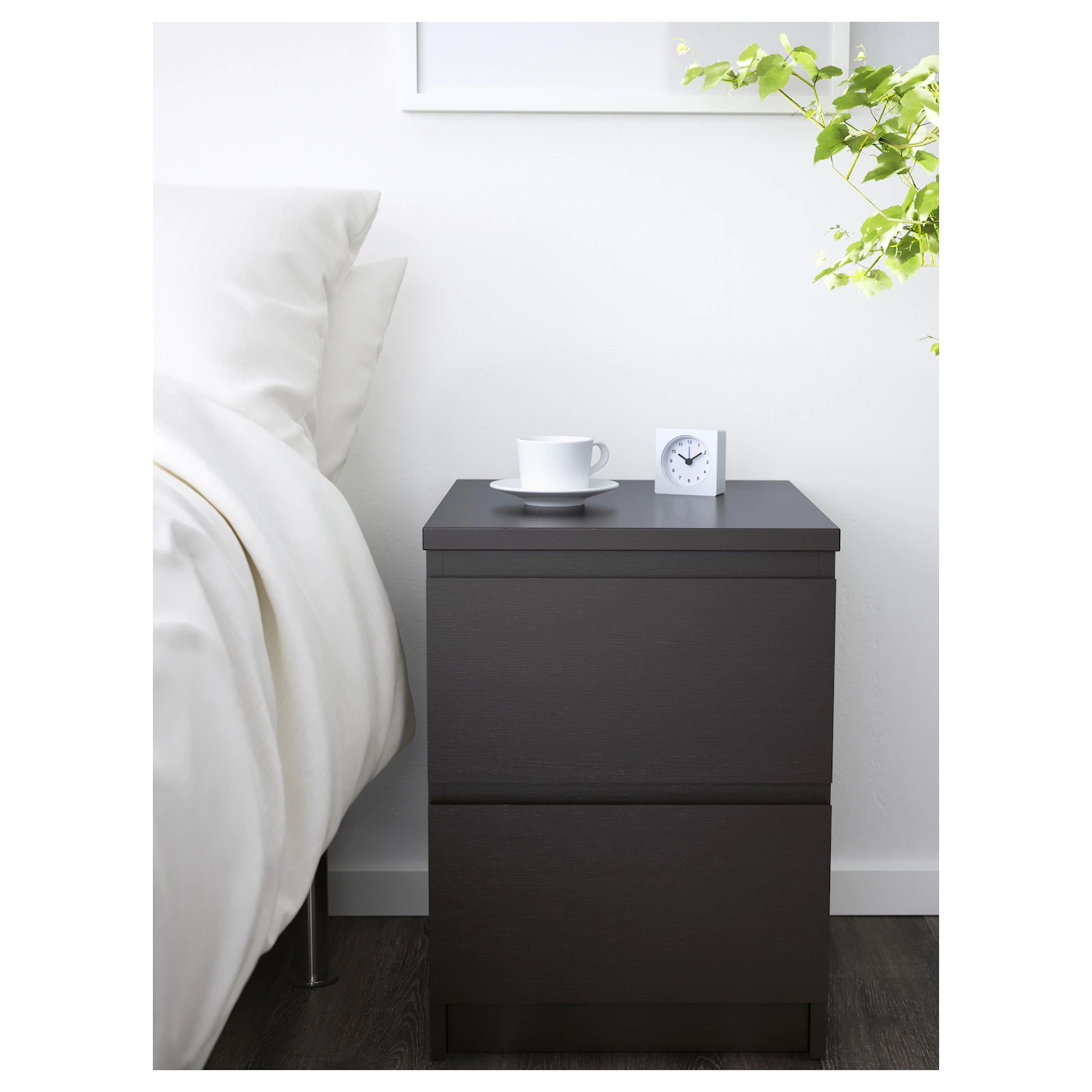If you need space for extra bedding, add MALM bed storage boxes under the bed. MALM chest of 2 drawers is the perfect bedside table and gives you plenty of storage next to your bed. The smooth-running drawers help to keep items hidden away, yet still have close at hand. The 6 deep drawers in MALM chest provide generous storage for all your folded clothes. The sleek design and smooth-running drawers are also long-lasting, both in style and quality.Material