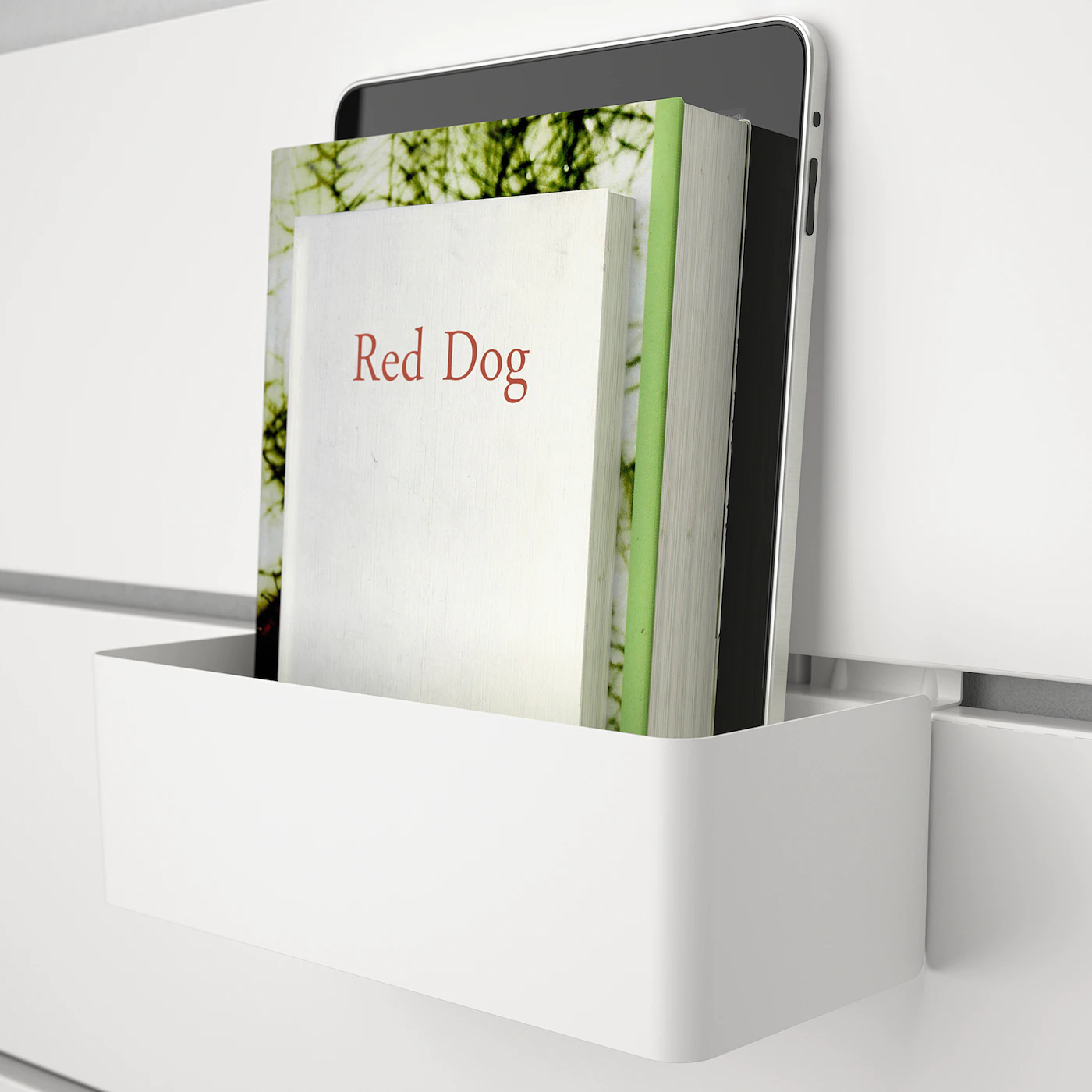 You can hide cables for lamps and chargers by feeding them through the holes at the back of the shelf.