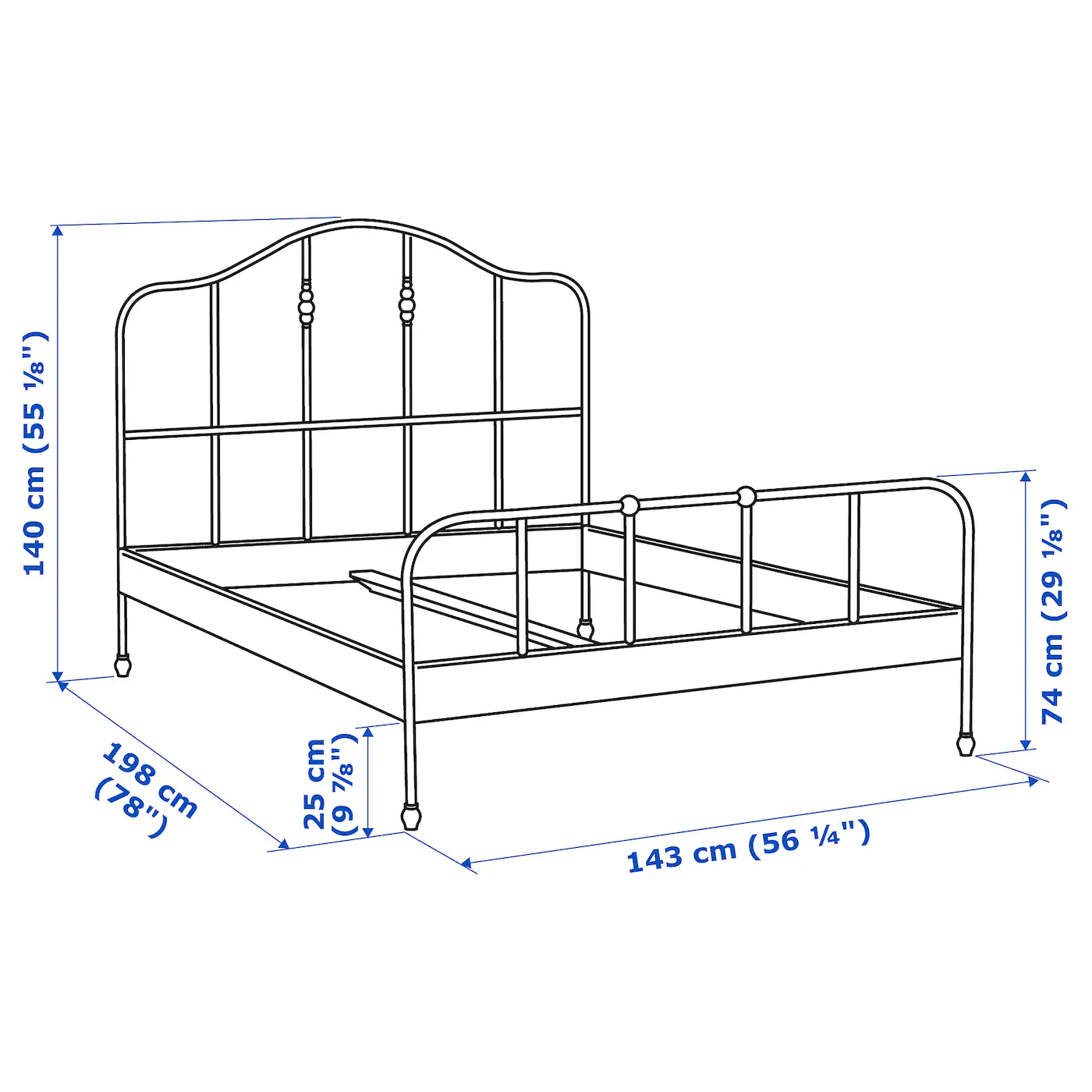 The powder-coated steel frame is strong, sturdy and easy to maintain. You can sit up comfortably in bed thanks to the high headboard – just prop some pillows behind your back and you will have a comfortable place to read or watch TV. There’s plenty of space under the bed for storage boxes – great for stowing extra quilts and sheets. You can choose the mattress comfort that’s best for you – the high headboard and footboard work well with mattresses of different thicknesses. The high footboard keeps bed textiles from falling onto the floor while you sleep. Whether you prefer bold or romantic, this versatile bed frame will look great with your choice of textiles and bedroom furniture. 16 layer-glued slats adjust to your body weight and increase the suppleness of the mattress.Material