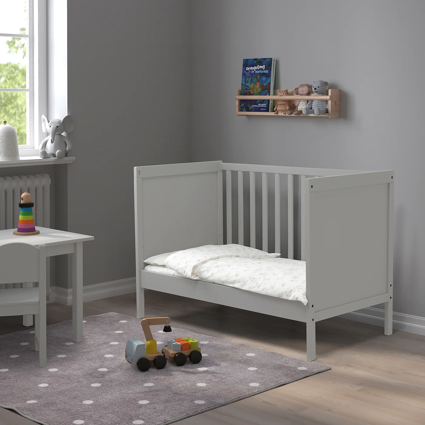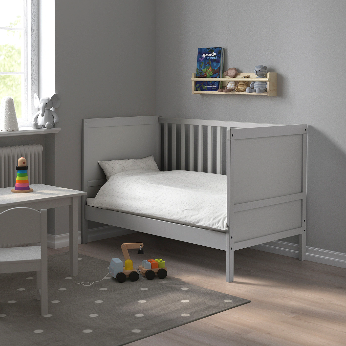 One crib side can be removed when the child is big enough to climb into/out of the crib. Your baby will sleep both safely and comfortably as the durable materials in the crib base have been tested to ensure they give their body the support it needs. The crib base is well ventilated for good air circulation which gives your child a pleasant sleeping climate.Material