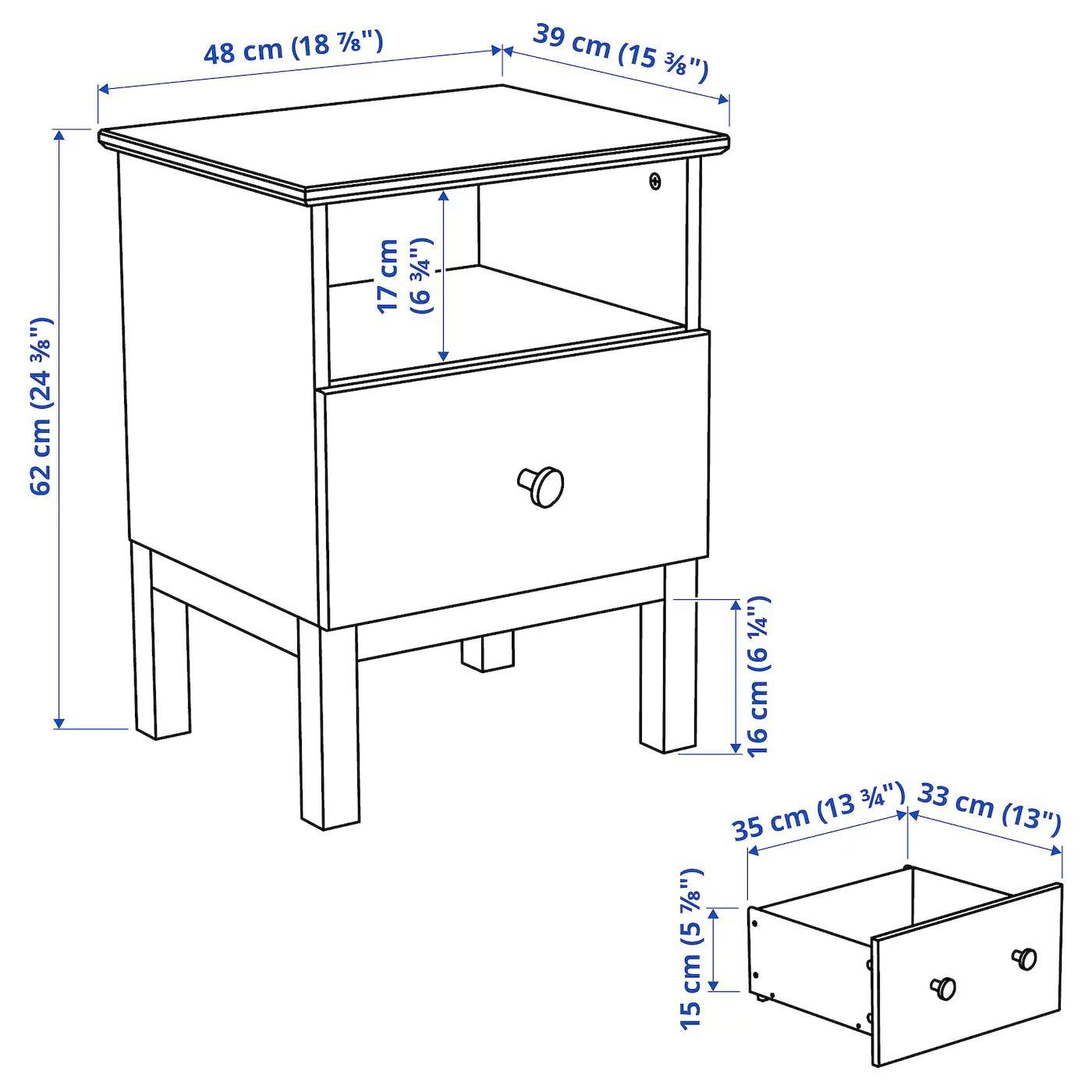 The hardwearing solid pine has natural variations in grain, color and texture – giving each piece a unique look. There’s plenty of space under the bed for storage boxes – perfect when space is limited. The bedside table has a top shelf, a handy drawer and an open storage compartment. Everything you need to store items that you want close to the bed. TARVA chest of drawers has 3 solid wooden drawers with matching knobs. With the same classic wooden expression as the bed frame and bedside table, it creates a coordinated look in your bedroom. TARVA is made of untreated solid wood. You can keep it as it is or stain, paint or wax it to create a personalized look, to update it – and love it for longer.Material