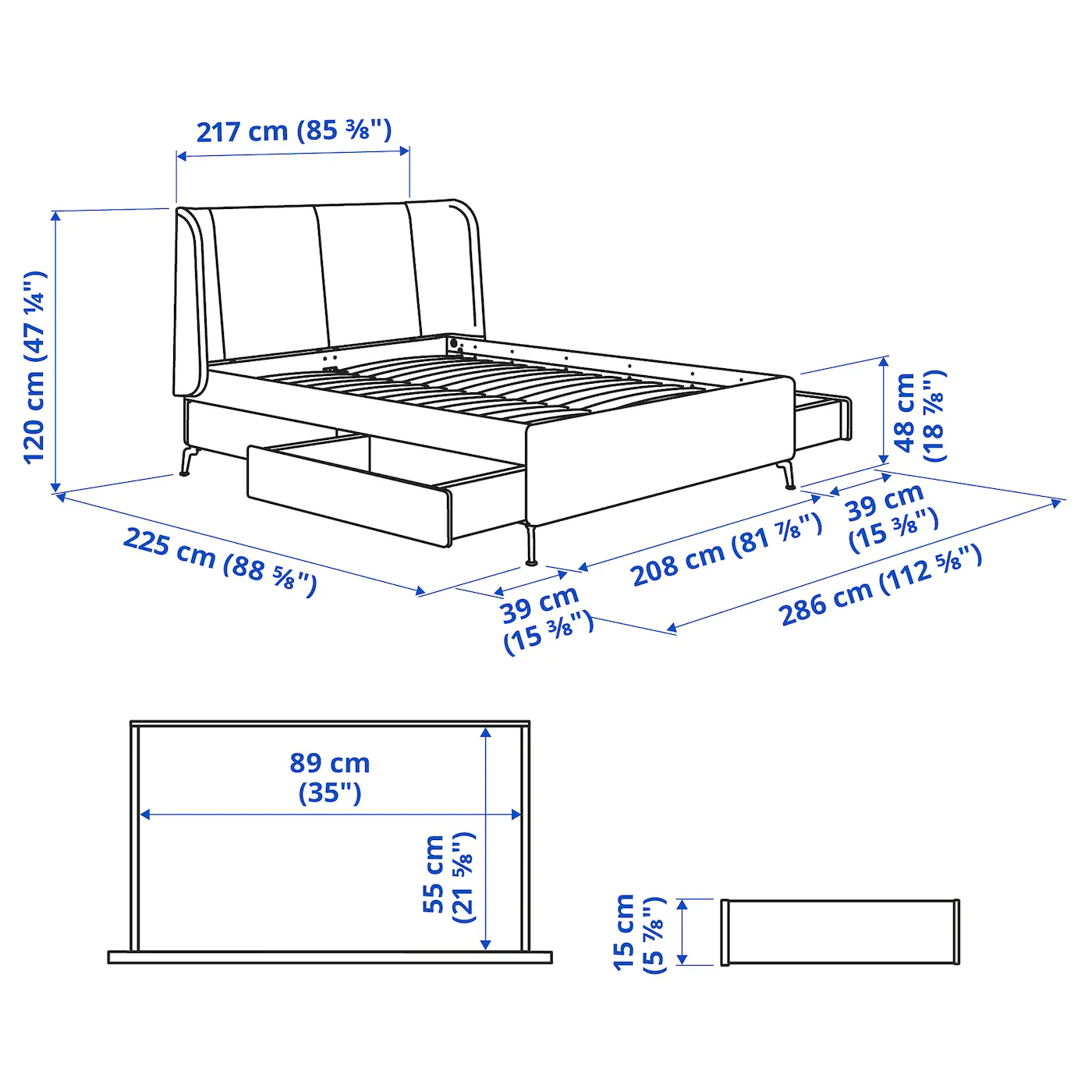 IKEA TUFJORD Upholstered Storage Bed Gunnared Blue King - Image 6