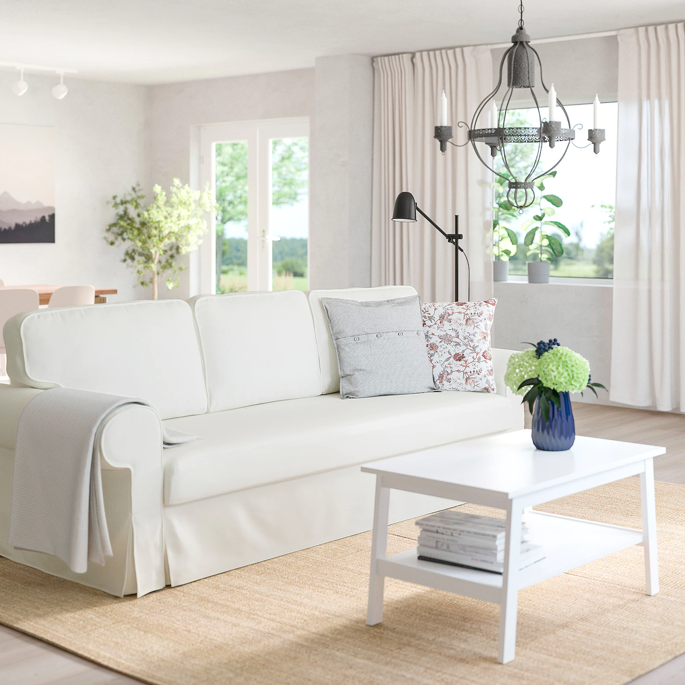 Converts quickly into a comfortable and spacious bed when you remove the back cushions and pull out the underframe. You get an even surface to sleep on since the seat comes as a single piece. The built-in storage is easy to access and has room for both bedding and pajamas. The cover is easy to keep clean since it is removable and machine washable. You can choose from many different covers and find one that you like and suits your home. Renew the look and extend the life of the sleeper sofa by changing the cover from time to time. VRETSTORP sleeper sofa is designed to match EKTORP sofa. 10 year Limited warranty. Read about the terms in the warranty brochure.Material