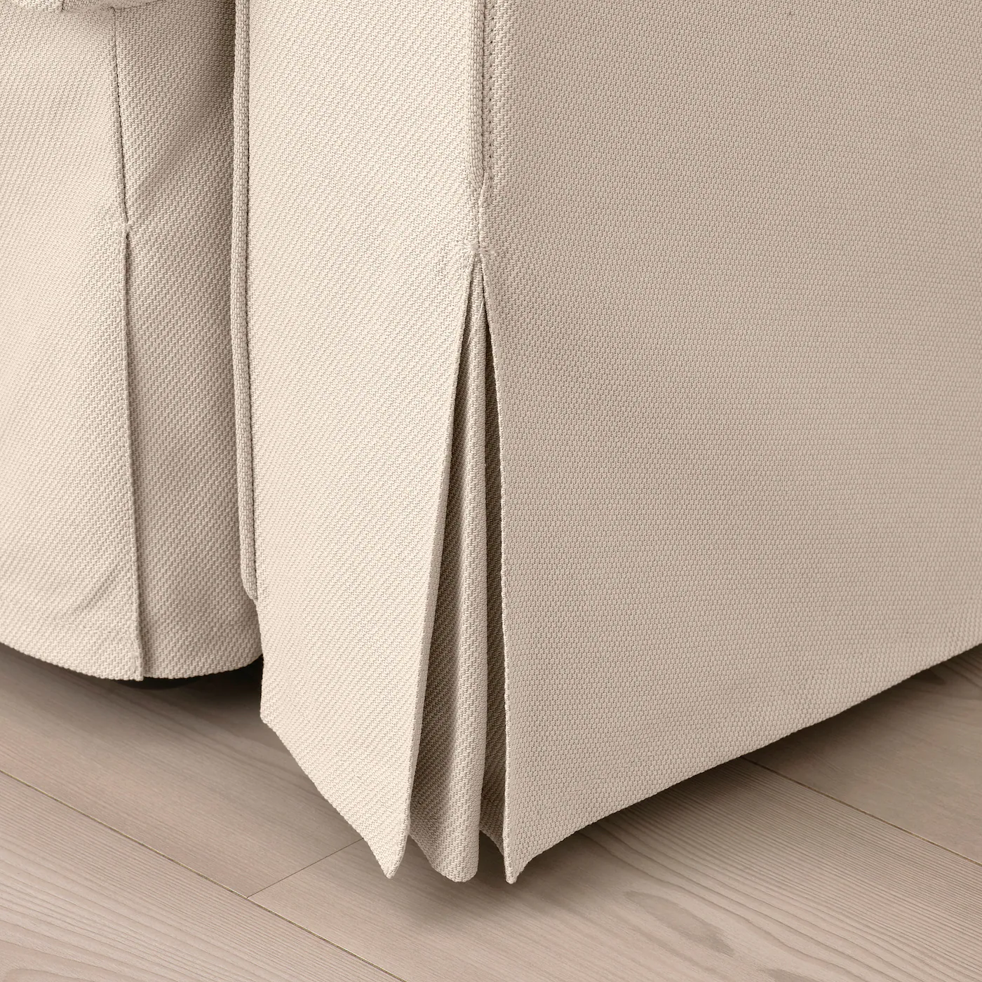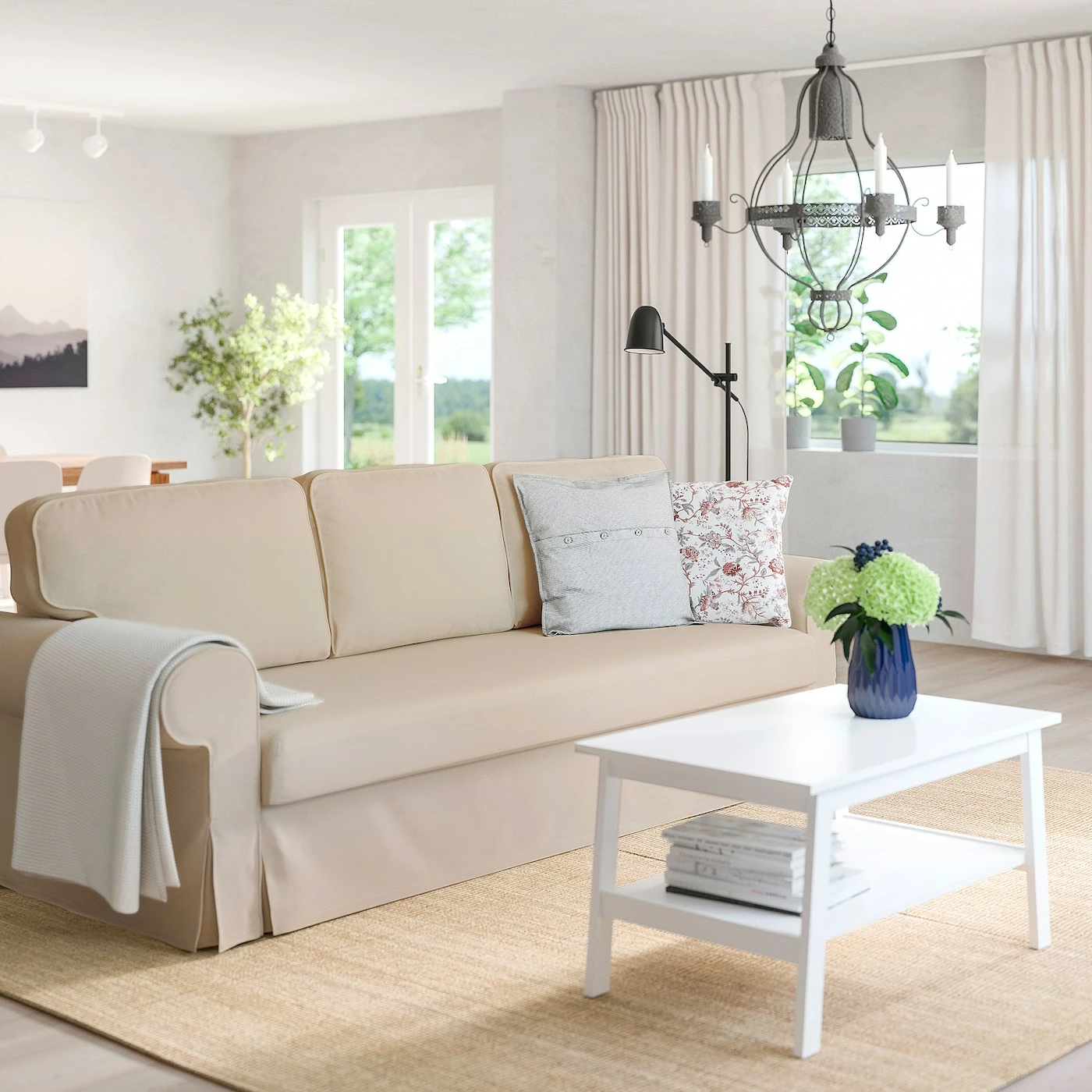 Converts quickly into a comfortable and spacious bed when you remove the back cushions and pull out the underframe. You get an even surface to sleep on since the seat comes as a single piece. The built-in storage is easy to access and has room for both bedding and pajamas. The cover is easy to keep clean since it is removable and machine washable. You can choose from many different covers and find one that you like and suits your home. Renew the look and extend the life of the sleeper sofa by changing the cover from time to time. VRETSTORP sleeper sofa is designed to match EKTORP sofa. 10 year Limited warranty. Read about the terms in the warranty brochure.Material
